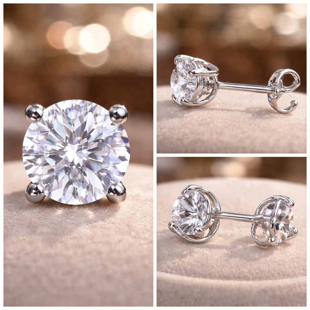 Moissanite Diamond Earrings 5mm 1ct. Diamond Stud Earrings Solid 14K white gold