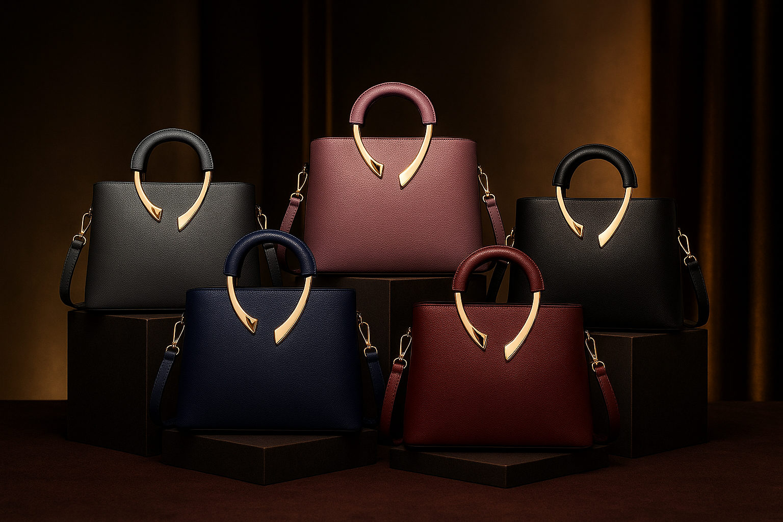 Genuine Leather Structured Top-Handle Handbag with Gold Sculptural Hardware