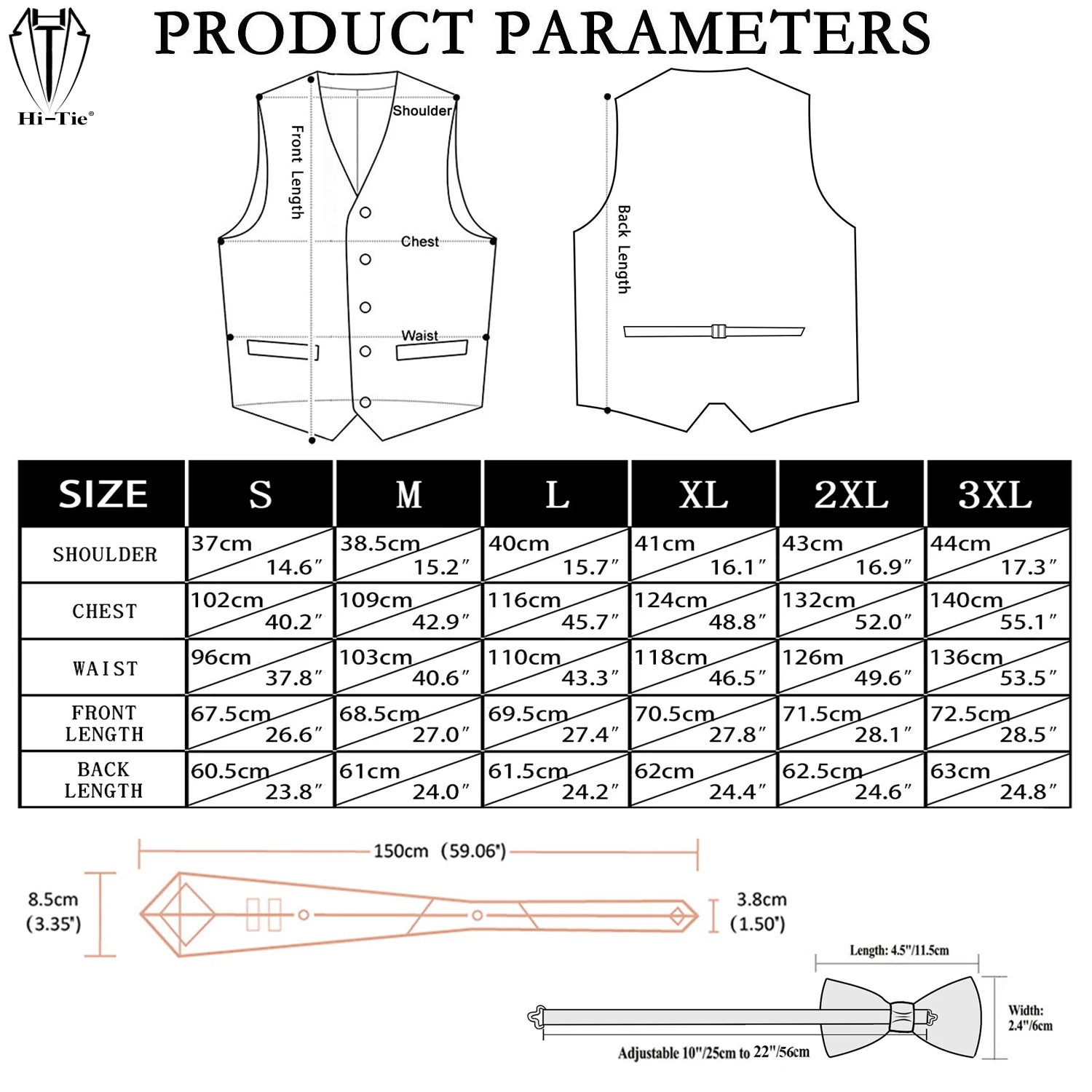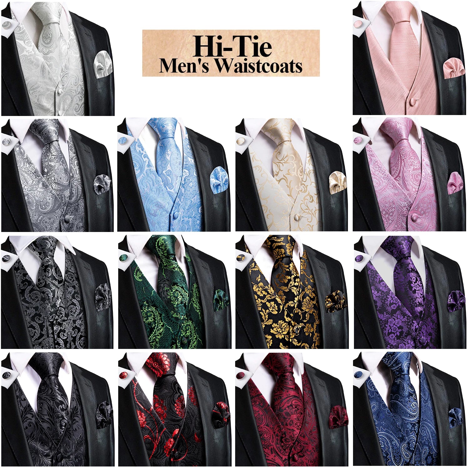 Mens Vests & Silk Tie Set. 5Pc. with Bowtie, Hanky and Cufflinks