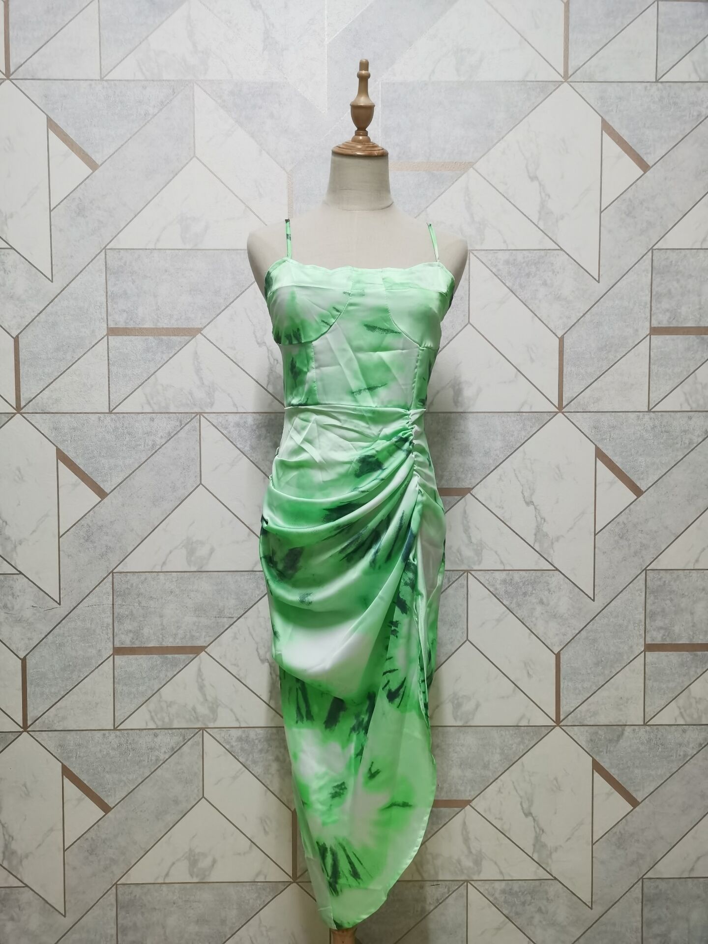 Spaghetti Strap Dress Women's Floral Print with Hem Slim Waist, Irregular Slit, Long Dress